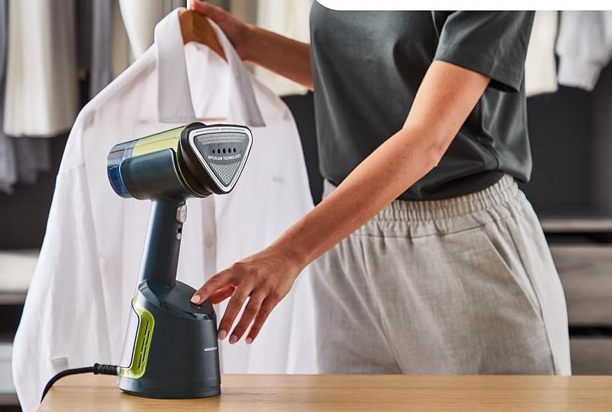 - How ironed: Experience iron-like results in one pass* thanks to the new technology with steam and suction; smooth easily and quickly without complicated assembly or door hooks (*Compared to the Tefal FV57 in 3-point position)