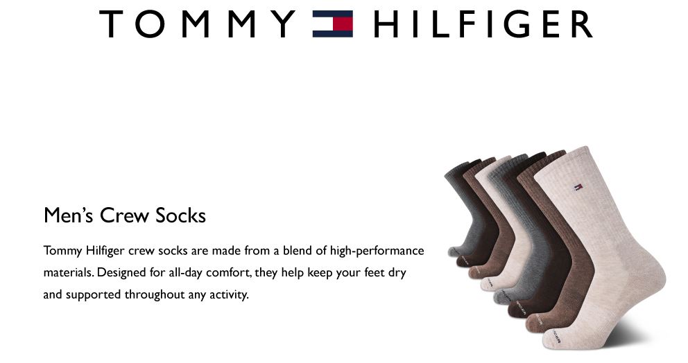 - OFFICIALLY LICENSED TOMMY HILFIGER: Breathable Athletic Crew Socks for Men; Since 1985, Tommy Hilfiger has been creating men’s apparel and accessories with preppy, nautical and athletic influences. Tommy Hilfiger’s focus on athleisure and streetwear keeps the collections as relevant today as they were in 1985