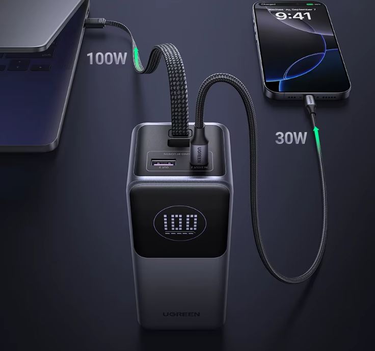מטען נייד UGREEN Nexode 130W 20000mAh עם כבל TYPE C מובנה