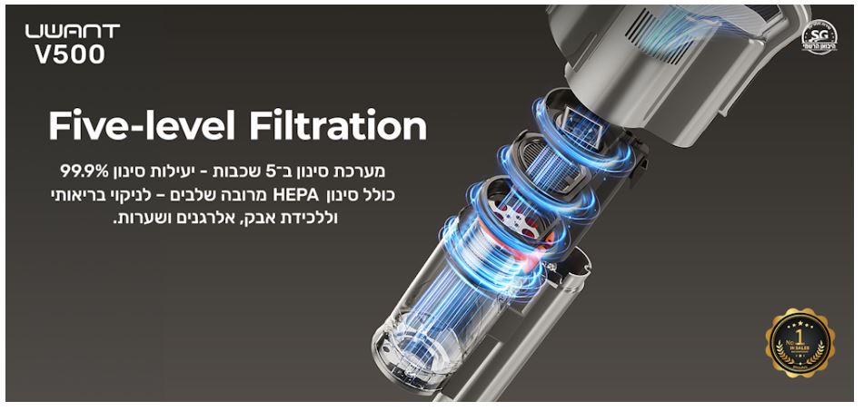 כולל סינון HEPA מרובה שלבים: לניקוי בריאותי וללכידת אבק, אלרגנים ושערות