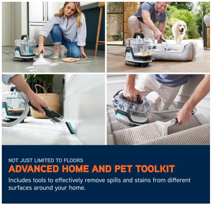- ADVANCED HOME AND PET TOOLKIT – Includes multiple tools to remove spills and stains from carpets and hard floor around your home and Pet Stain and Odour Neutralising Solution to break up tougher and smellier messes