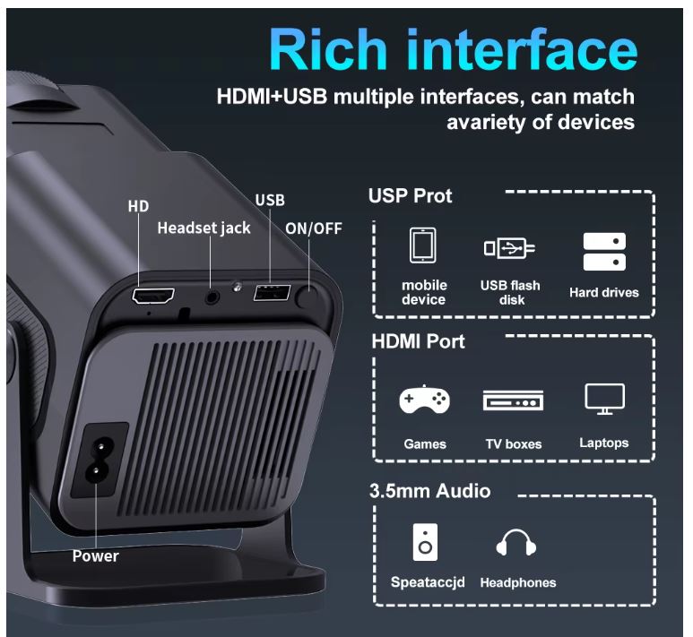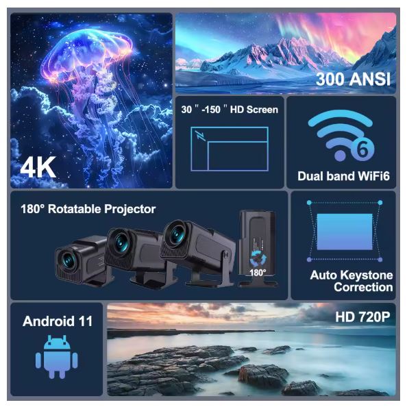 4K Resolution & 300 ANSI Lumens:Enjoy vivid 4K visuals with 300 ANSI lumens, perfect for home theater or outdoor viewing.