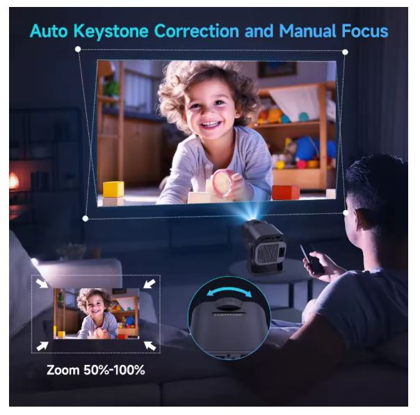 Built-in Speaker & Auto Keystone Correction:Enjoy immersive audio with a built-in speaker and enjoy easy setup with auto keystone correction.