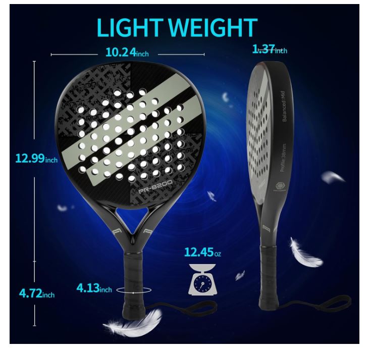 - DIMENSION: Padel Thick: 1.46 inch.Weight: 360g-370g.Suitable for beginner to advanced players