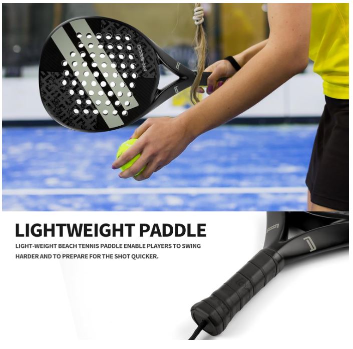 With soft Non-slip SWEAT-RESISTANT grip handle with Wrist Tether can Avoid wristy swing and racket slip from hand during play. enhanced large size grip fit your hand better. Perforated, sweat absorbent cushioned grip of the paddle help you enjoy longtime play without fatigue.