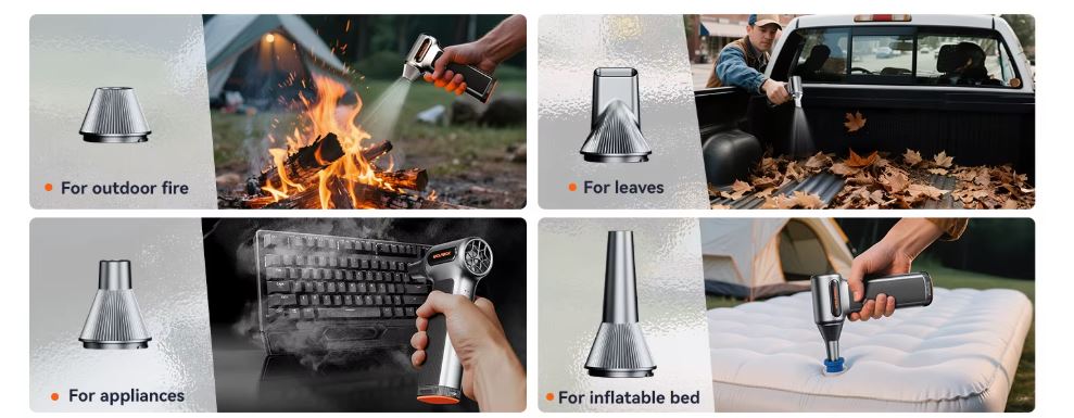 Rechargeable Air Blower: Long-lasting power for multiple uses. Electric Air Blower: Portable and convenient for on-the-go cleaning needs.